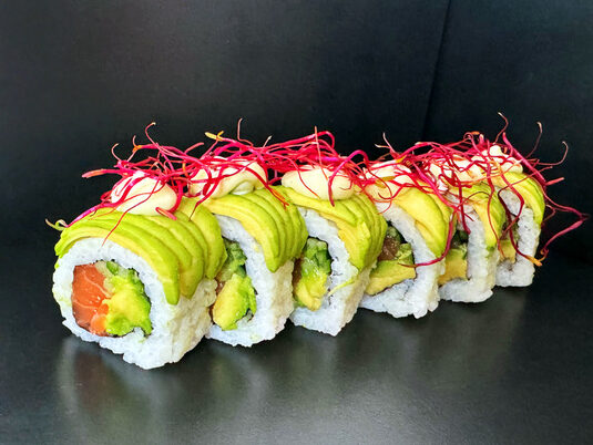 ShopSushiKaburimaki 8 stkSunshineSunshinekr. 120,00 Surimi roll topped med laks, Tangsalat, sesame Sunshine antal Tilføj til kurv 1 Category Kaburimaki 8 stk Beskrivelse Surimi roll topped med laks, Tangsalat, sesame